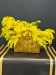 Состав: цимбидиум - 15 шт., роза - 11 шт., спрей - 7 шт., лагурус - 3 шт., альстромерия - 7 шт., онцидиум - 2 шт., мимоза - 3 ветки, гортензия - 3 шт., перо - 10 шт., эвкалипт - 2 шт., упаковка