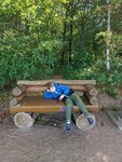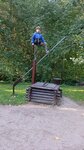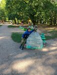 Очень красивая площадка для детей. Много фигурок в виде сказочных персонажей, сделаны качественно, хотя некоторым не хватает чуть-чуть реставрации. Есть качели, горка, песочница, скамейки и урны тоже в наличии. Чуть в стороне большая зимняя горка. Детям явно есть где побегать и поиграть, фигуры должны быть интересны. Песочница только маленькая и грустная какая-то.