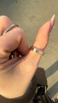 У меня кольцо непростое: состоит из трёх скреплённых между собой полос. Изначально было чуть великовато. Перед свадьбой в другой мастерской его уменьшили, но при этом сильно сжали все три полотна — хотя между ними должен быть небольшой зазор. Из-за этого кое-где получилось неровно, постоянно цеплялись волосы, и так я проходила 4 года. Решила обратиться сюда. Объяснила ситуацию — мастер не просто убрал расстояние между полотнами, а полностью восстановил первоначальную конструкцию, вернув аккуратные промежутки, как было при покупке. При этом размер остался идеальным. Я и не знала, что моё кольцо может так красиво выглядеть. Огромное спасибо за профессионализм! И отдельное спасибо что почистили кольцо в подарок!!💝 На втором фото - там пространства вообще не было, было полностью прижато!