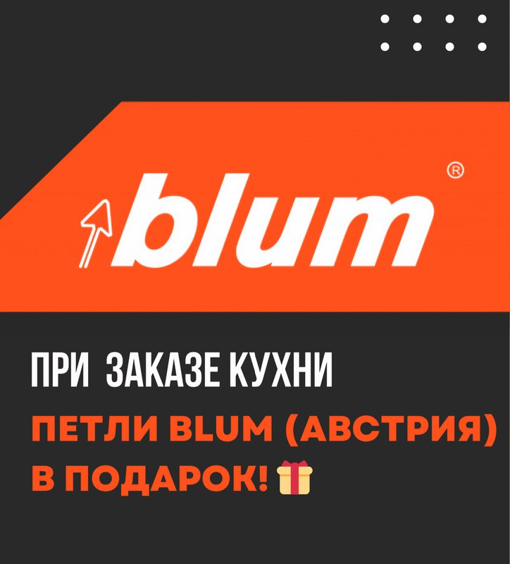При заказе кухни в Discount Mebel, петли фирмы Blum - в ПОДАРОК 🎁