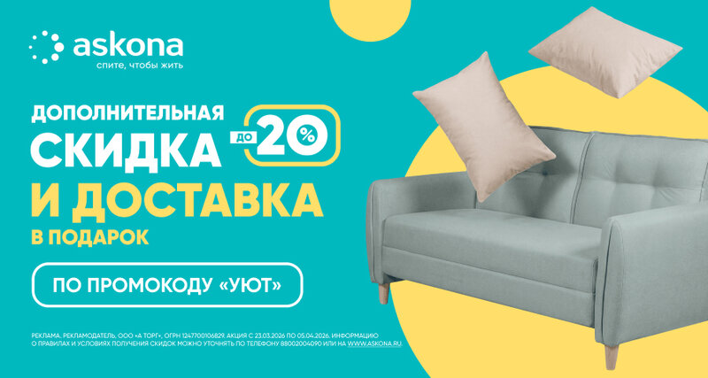 Промокод УЮТ. Скидка до 20% и доставка в подарок. До 05.04.