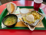 Когда то давным-давно кушал в данном фастфуде и тогда мне казалось неплохо. Сегодня же (21 апреля) решил взять комбо «6 за 300» и был немного огорчен. Суп был очень жирный. Настолько, что как будто слой в сантиметр на нем был из масла. Картошка отличная, так же как и добавки. Невероятными оказались гренки с чесночком. В целом можно было бы сказать «а что ты хочешь за такие деньги?» Но в соседнем фастфуде за эти деньги куда более качественно готовят. Еда 3.5/5 за такие деньги. А вот обслуживание оставляет желать лучшего. Подошел на кассу: -Здравствуйте -Делайте заказ Разве так должно выглядеть общение? Лицо кассира было такое, как будто от меня у него испортился день. А такие моменты сразу вызывают отторжение. Обслуживание 1/5