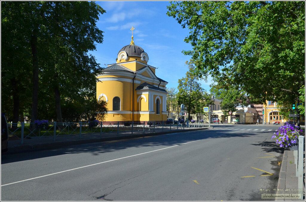 Небольшая аккуратная часовня, на углу Андреевского сада..