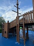 Площадка очень интересная! Некоторые её элементы раньше нам не попадались на др. детских площадках, например, змеевидная качель. Пришлось подождать пока освободиться место - всей ребятне не охота быстро слезать с неё 🙂 Рядом с этой площадкой находятся кафе, отличный верёвочный парк, Остров фортов. Когда в следующий раз снова приедем на Остров фортов, то погуляем снова на этой площадке!