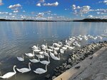 It's a very atmospheric place. Wide promenade for walking. The benches are standing. Nice restaurant nearby. Well, swans, where without them. You can take some popcorn and feed it.
