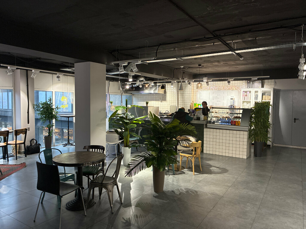Зал проходной, атмосфера вокзальная. Были в воскресенье во второй половине дня. Процессы выстроены максимально плохо. Работает только одна сотрудница, которая и принимает заказы на кассе, и делает напитки, и готовит еду. При этом поток клиентов немаленький, почти полная посадка, постоянно скапливается очередь. Сотрудница уже на этапе заказа общается нервно (в общем-то, неудивительно). При этом, похоже, нет даже системы, в которой она может отслеживать созданные заказы, и ей приходится держать всё в голове. Иначе непонятно, почему она по мере выдачи нам заказа (а он выдаётся кусками — как получится) трижды уточняла, что мы заказали: сначала забыла, что порции пельменей 2, потом забыла, какой кофе взял муж, потом забыла, какой чай взяла я. Уборка столов, видимо, тоже на сотруднице, и поэтому грязные столы не убираются вообще. Внятного места, куда посетители могут самостоятельно убрать подносы, тоже нет. Выдача заказов оригинальная: сотрудница просто кричит на весь зал «девушка, ваш салат», и надо догадаться, что обращаются именно к тебе. При этом отдельно ходишь забирать горячее, салаты, напитки, так как отдавать всё одновременно у сотрудницы возможности нет. В зале отсутствует какая-либо фоновая музыка, что добавляет некомфортной атмосферы. По основной еде: пельмени были как просто приличные из магазина, порция маленькая (240 г), ценник оверпрайс.