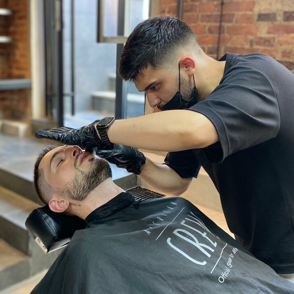 Услуга выполняется с распариванием лица горячим полотенцем и выведением контуров шаветом (альтернатива опасной бритвы) В работе используются все инструменты (ножницы, машинки, шавет)