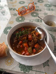 Рагу в горшочке готовилось явно отдельно, а потом сложили слоями. Котлеты весьма горелые. Мясо в плове жуется с трудом. Для этого региона может и нормально, но по честному не выше троечки