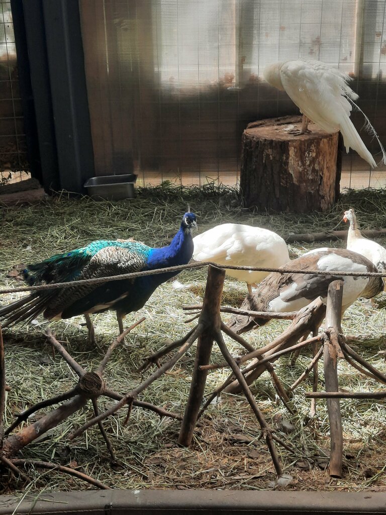 В коридоре можно пройтись и посмотреть на павлинов и цесарок в непосредственной близости