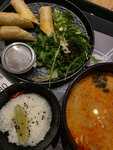 Том ям — насыщенный, ароматный и по-настоящему вкусный: идеальный баланс остроты, кислинки и специй. Спринги с курицей радуют хрустящей корочкой и сочной начинкой. Блюда, к которым хочется возвращаться снова.