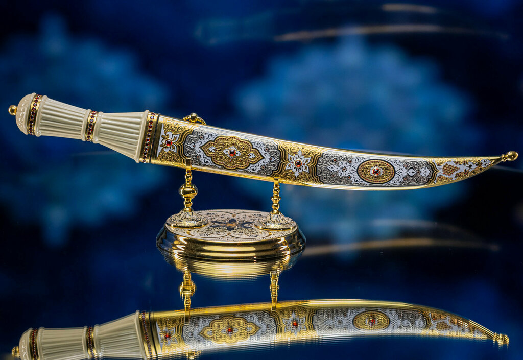 Этот Коран авторской работы выполнен с использованием изысканных материалов, таких как серебро, ювелирная латунь, малахит, кабошоны и криста...
