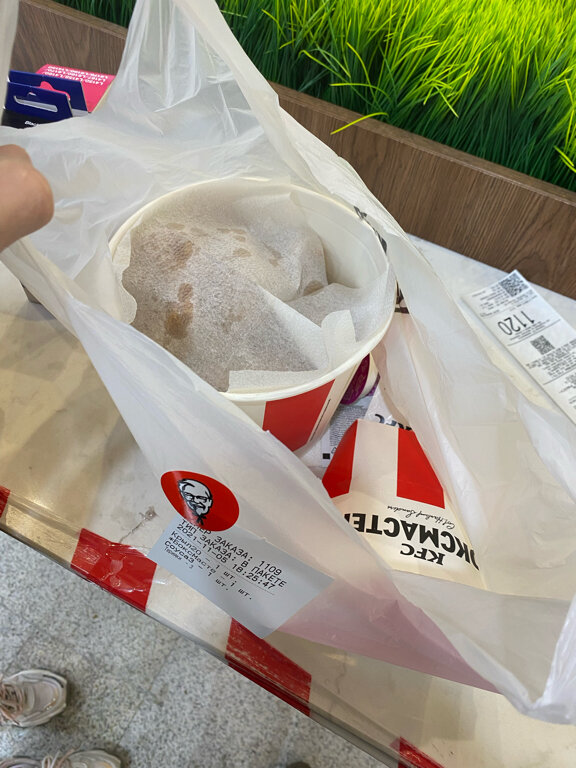 Заказали на 5 тыс(!!!) 2 комбо со смешариками, баскет, 12 креветок, сырные палочки обычные и с клюквенный соусом. Заказали доставку через такси. Когда приехало обнаружилось что вместо 12 креветок положили 11,в одном комбо вместо ролла положили бургер, не положили половину крылышек и у одной игрушки (из комбо) голова не крутится.