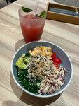Зашел с дочкой перекусить перед катанием на катке. Заказал боул с тунцом и картошку фри с нагетсам. Понравилось обоим. Боул добавлен насыщенный и вкусный соус. Нагетсы и картошка в оригинальной подаче. Свежие продукты : овощи, рыба и курица. Рекомендую! Успехов!