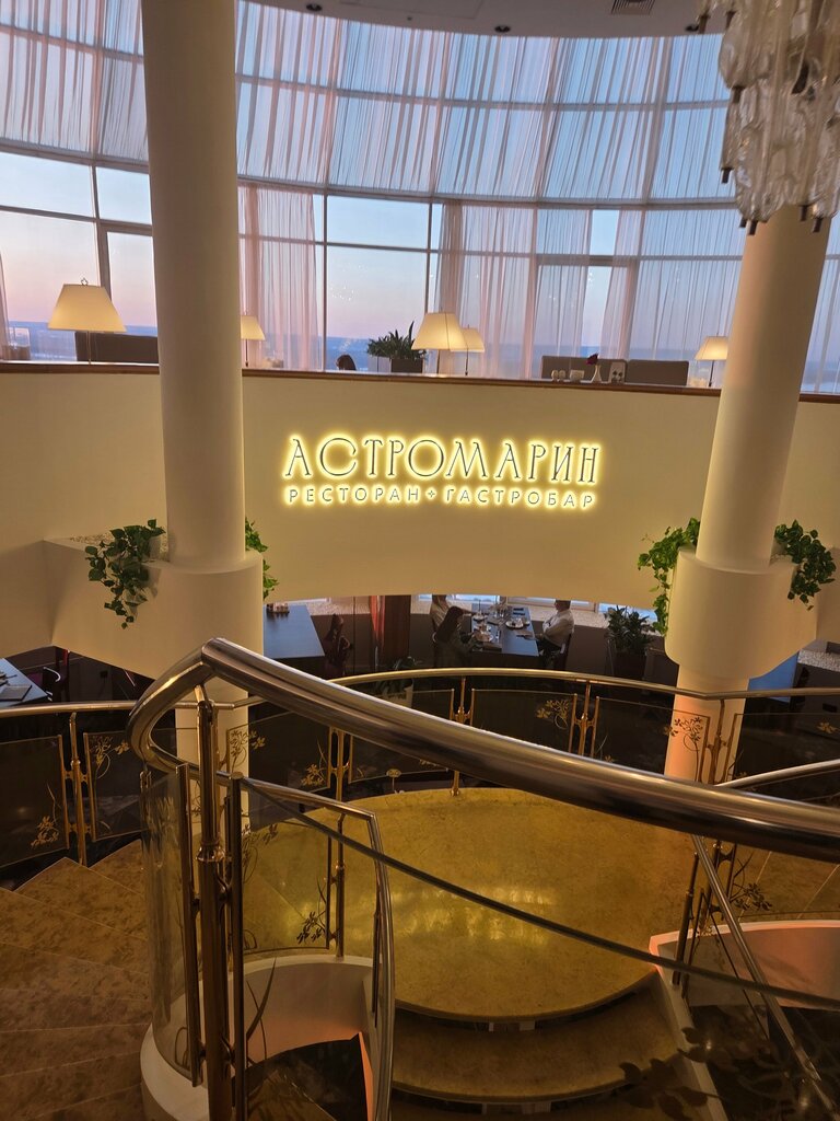 Посетили двухэтажный ресторан «Астромарин» на берегу Волги. Расположен он удобно — на 7-8 этажах известного отеля. Атмосфера: Панорамные окна действительно впечатляют — открывается красивый вид на Волгу и Жигулёвские горы. Интерьер приятный, светлый, чувствуется уровень заведения. Кухня: Заказали несколько блюд. Понравились равиолли в нежном соусе с черри и зеленью. Котлеты из щюки и запечённый картофель были отлично приготовлены. Суп-пюре — нежный, с насыщенным вкусом. Закуски — красиво оформлены, рыба, сыр, орехи — всё свежее. Порции: Здесь стоит отметить, что порции не очень большие — скорее, ресторанного формата. Тем, кто любит основательно поесть, возможно, придётся заказывать больше блюд. В целом: ресторан на достойном уровне. Хорошее место для романтического ужина или деловой встречи с красивым видом. Цены соответствуют качеству и локации.