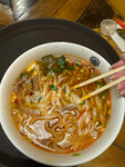 Мне очень нравится здесь Фо Бо. Густой, острый, мясной такой…очень вкусно. Пробовала рис Ком Ран (жареный, с курицей). Неплохо. Но фаворит суп Фо Бо. По заведению отметила для себя 2 нюанса: 1. Чай не подают, только прохладительные напитки, в том числе вьетнамское пиво. 2. Концепция кафе - стрит-фуд. Интерьер простой. Не очень располагает долго сидеть и вкушать явства заморские)) Всё по-спартански: перекусил и пошел дальше. Также здесь нет официантов. Заказ оплачиваешь на кассе, потом забираешь у поваров. Слушать надо внимательно, чтобы не пропустить, когда кричат о готовности твоего заказа. Вот здесь бы пригодились те маячки как на фуд-кортах, которые пищат, когда можно забирать. В целом, место неплохое. Приду еще как-нибудь на Фо Бо.