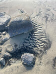 Вода, камни, песок. Были при отливе. Замечательно. Таинственные следы на песке.