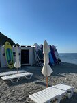 Хутор Бетта! Очень уютный небольшой пляж! Здесь есть абсолютно все: пост полиции, туалет, душ, вышка спасателей, ктр активно работают, развлечения для детей и взрослых: дракоша-гоша, ватрушка, катамараны, водные мотоциклы, сап-доски, для малышей есть небольшая водная горка. Несколько столовых с приемлемыми ценами, одна из них вечером работает как кафе с живой музыкой. Прям от пляжа идут два торговых ряда, годе можно купить все- от продуктов до пальто. В конце торговых рядов магазин пятерочка и аптека.Вода в море очень чистая! Возле буйков было видно камни на дне! Отгорожена детская зона для купания. Есть кабинки для переодевания. В 2025 году шезлонг под навесом стоит 400 рублей- 4 часа, а на весь день-600 рублей. Нам очень понравилось! Приезжайте, убедитесь сами!