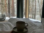 Была тут впервые. Из плюсов - площадь дома хорошая, место достаточно, не так что кровать от стенки до стенки и 2 метра на столик) весь пол с подогревом, большие панорамные окна, это очень круто. Вид шикарный. Был комплимент при заезде - фруктовая тарелка. Мелочь, но приятно. Косметика в ванной с приятными отдушками, в мелочах чувствуется, что старались пронести концепцию всего натурального, например чай на травах, плетеные салфетки, корзинки плетеные, щётка под дерево - это прикольно. Из минусов Кухня средняя, в доме не хватает соли, пакетиков с чаем и кофе. Ресторан затянут плёнкой, но осенью холодно там, а иногда хочется посидеть не в домике, лучше бы его застеклить. По территории наверно что-то будут ещё делать, тк есть ощущение незавершенности. Детская площадка есть в сторонке, но очень старенькая. Как итог. Ехать сюда можно, но без детей иначе им будет очень скучно или дети уже сами себя развлекать должны) идеально для пар как молодых, так и взрослых, но за кулинарными изысками с выездом в другие рестораны)