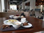 Ресторан интересный. Симпатичный интерьер. А еду до стола подвозят роботы-официанты. Я попробовал комплексный обед "Комбо геолога" за 400 рублей. В него входит салат из квашеной капусты, вареной картошки с ростительным маслом. Приятный. Но в такой маленькой тарелочке, что брать его от туда вилкой и ножем затруднительно. Основное блюдо было отварной картофель с куриными биточками, грибами и сыром. Тоже вкусно, но было оно по горячее, было бы лучше. И чёрный чай. В общем, перекусить можно.