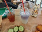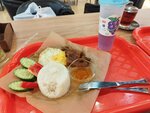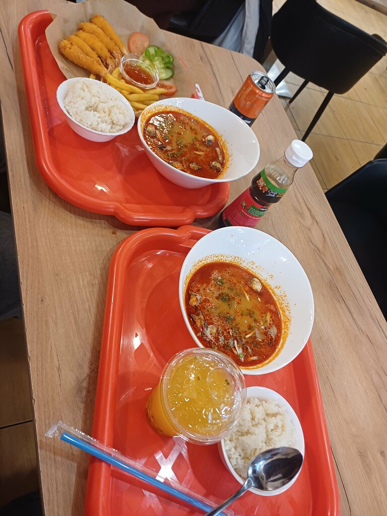 Рëбра супер-вкусные! Из аппетитного присмотрела десерт и напиток из таро, а также разные виды булочек на пару. Дружелюбный и вежливый персонал. Раковина для мытья рук порадовала, не везде они есть в таких местах. Симпатичное оформление. Стойки у панорамных окон, как в корейском комбини. Понятное меню, широкий ассортимент. Обязательно приду снова! Upd. Я действительно пришла сюда снова! Напиток с таро чудесный. Ещë хочу отметить вкусные куриные котлетки и вьетнамский чай. На самом деле, пока что невкусных позиций вообще не попадалось. Очень милые работники. На русском говорят слабо, но всегда дружелюбные, готовы подсказать, что повкуснее, а на стойке заказа есть большое меню, в котором прямо пальцем можно указать, что ты хочешь, так что недопониманий не возникает.