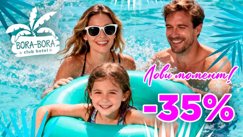 Лови момент! Скидка 35% скидка при бронировании отдыха от 5 ночей! Полные условия в разделе "Акции" на сайте www.bora-hotel.ru