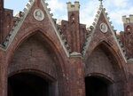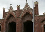 Бранденбургские ворота из 7 сохранившихся со времен Кёнигсберга по-своему интересны и к посещению обязательны по нескольким причинам: 1- они единственные из ворот прошлого, имеющих вполне конкретный адрес и по прямому назначению использующиеся с 1657 по сей день; 2- это объект культурного наследия федерального значения; и 3- в стенах исторической постройки находится замечательный, хоть и самый молодой, музей марципана (для меня это стало решающим, чтобы побывать там). Построенные более 3,5 веков назад ворота 1-го кольца обороны Кенигсберга вели к орденскому замку Бранденбург у залива Фришес Хаф, были деревянными и упирались в насыпной вал перед рвом с водой. Спустя почти век, в 1755 король Фридрих II, называемый в народе «старым Фрицем», ветшающее строение приказал снести, а на его месте построить кирпичные ворота с арочными проездами, с казематами, складами и прочими помещениями. А после перестройки их в 1843 ворота стали не только надежными, но и красивыми. Тогда на неоготическом фасаде вместе с украшениями, благодаря придворному мастеру В.Л.Штюрмеру, и появились скульптурные портреты военного министра Германа фон Бойена, одного из реформаторов прусской армии, и генерал-лейтенанта Эрнста фон Астера, главы инженерного корпуса и создателя II вального обвода. Ворота, пострадавшие, но уцелевшие во время ВОВ, от заброшенности и нецелевого использования утратили свой «товарный» вид, но после недавней реставрации по-прежнему в строю. Они невелики, лишены помпезности и оригинальны, это наследие минувших времен и его надо видеть.