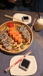 Состав: мидии, рис, нори, огурец свежий, спайси соус, икра масаго