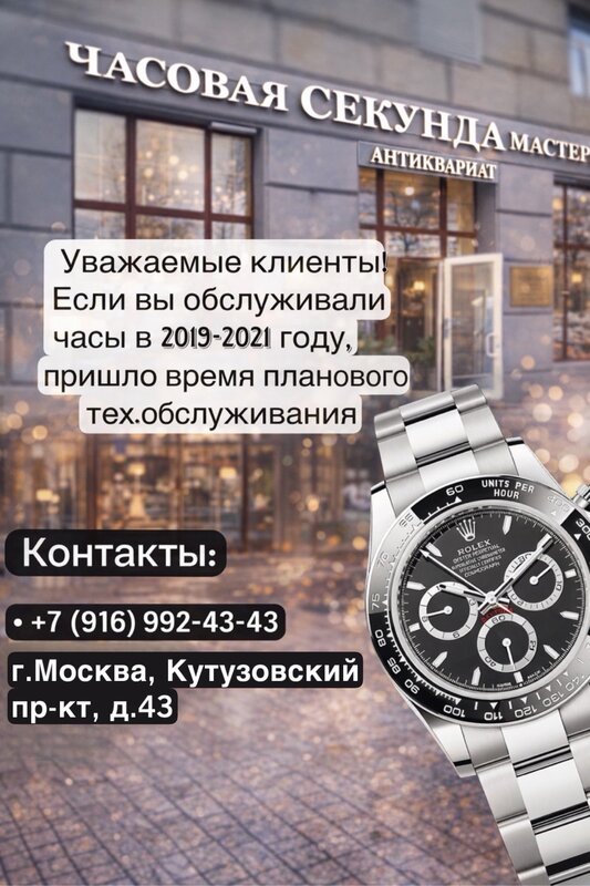 Часовая мастерская "Секунда" по адресу Кутузовский проспект д.43, является одной из старейших часовых мастерских в Москве. Мы предоставляем полный комплекс услуг по ремонту швейцарских часов элитных брендов.