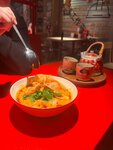 Спонтанно решили посетить данное заведение и остались довольны. Атмосфера стритфуда, китайские улочки, это все создаёт неповторимый вайб. Все блюда понравились, да, вкус своеобразный, но надо учитывать это паназиатская кухня, для любителей острого и кислого. Мы брали ламен с морепродуктами и хайнаньский(вроде), чай наивкуснейший, без горечи и пыльного осадка на дне. Цены приемлемые на уровне своей компании и любого другого ресторана-кафе(400-600 за позицию). Однозначно ещё вернёмся!