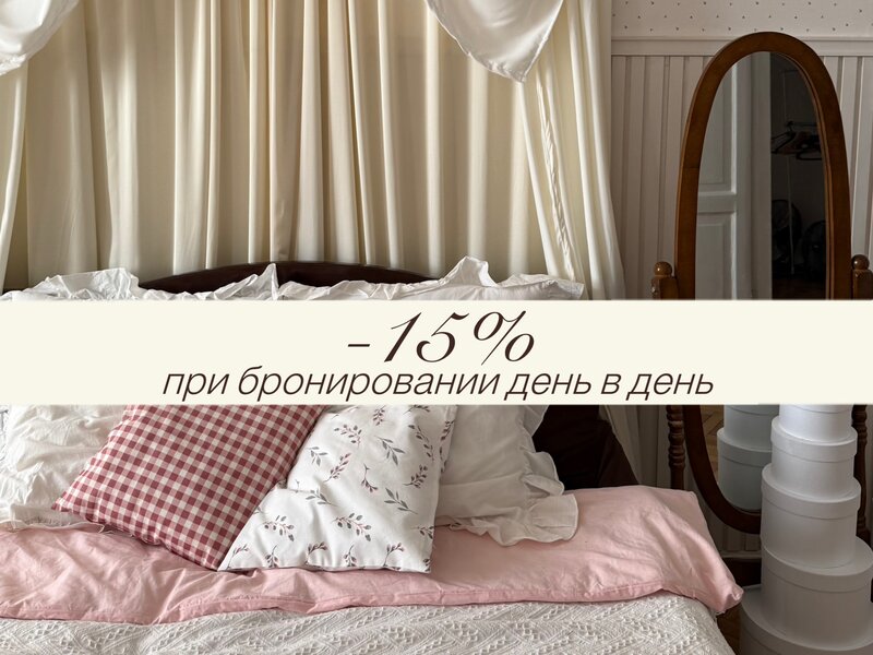 Ода женственности и элегантности: обои в мелкий цветочек, узоры на люстре и настольной лампе, постельное бельё — синие акценты, добавляющие в интерьер лёгкости и свежести. Цена указана за час при бронировании от 2х часов
