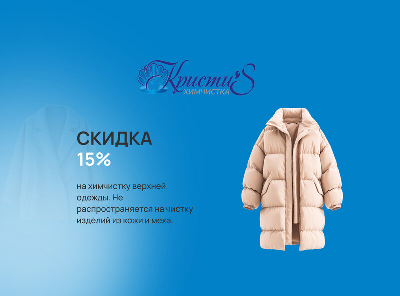 Весь март в Химчистке "Кристис" действует акция на чистку верхней одежды!