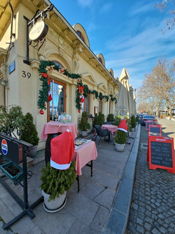 A big delicious pleskavitsa, not bad fish soup and a shop salad. Friendly staff and a pleasant atmosphere. You can sit both in the cozy restaurant room and on the veranda opposite the Danube