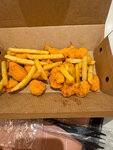 Ждала чай и бокс с картошкой и кусочками двадцать минут, мой заказ был один.. после вопроса о том, когда будет готов заказ, примерное время было 5-6 минут Спустя 10 минут мой заказ собрали с печки-ленты прямо передо мной, картошку взяли с чужого заказа Пол стакана уже остывшего «чая», и половина картошки из чужого заказа))