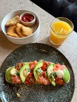Брускетта с говядиной и кунжутно-луковой заправкой