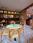 Посетили кафе единожды по многочисленным отзывам. Интерьер достаточно обычный, но приятный, понравилось интересное дизайнерское решение по свету - это светильники с кружками. Очень впечатлило наличие в туалетной комнате всех необходимых принадлежностей (ватные палочки, диски, прокладки, тампоны, салфетки влажные), чувствуется забота о клиенте. По еде ставлю четвёрку, порции маленькие, даже дети не наелись, ну и по вкусу не впечатлило. Ещё нам не хватило выбора десертов, поэтому пошли в другую кофейню.
