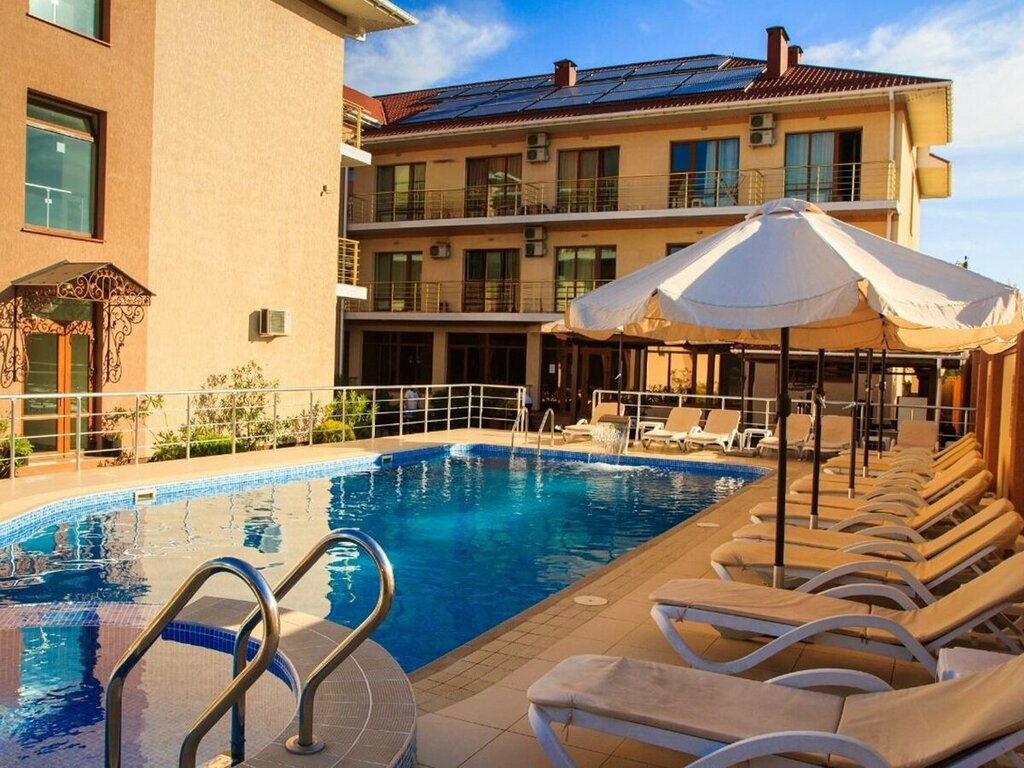 Хороший отель. Красивая территория, есть бассейн. Красивый холл, красивый ресторан. Вкусное питание. В стоимость входит завтрак, шведский стол. На обед и ужин тоже можно прийти в ресторан, и выбрать, тоже всё вкусно, и цены хорошие. На территории много столиков, где можно покушать. Можно купить блюда в ресторане и вынести на улицу. Либо заказ принесёт официант. В меню вечером есть блюда на мангале. Обслуживание тоже хорошее. Приветливая администратор, повара хорошие, девочки на кассе и официанты. Из минусов: не понравилась раковина в ванной, она настолько маленькая, что умыться и не расплескать воду невозможно. Еще и полка прямо 3пыралась в лоб, когда наклоняешься. В общем, лужа под ногами получалась огромная)) И номер, вообще, маловат. Для ребёнка принесли раскладушку, поставили в угол и места почти не осталось. Телевизор стоит на столике, загораживает зеркало, хотя телевизор можно было повесить на стену. Не понравилось, что в коридорах 2 дня не убирали и песок после моря, и пыль были на лестничной площадке и по коридорам. Но, в принципе, если не придираться к мелочам, то все хорошо. И отдохнули мы нормально)))