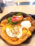 Заехали на завтрак с друзьями перед отъездом в аэропорт по рекомендации друзей. Взял сет кофе: эспрессо, капучино и фильтр-кофе за 500+ рублей - кайф! Официант всё рассказал про кофе и рассказал как дегустровать. К яичнице попросил мясо - без проблем отошли от меню и добавили ростбиф.