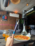 Дочь захотела пиццу пепперони. Не вкусная. Тарелки принесли с присохшеми остатками пищи, попросили поменять. Принесли другую тарелку, на чёрном цвете тарелки остался отпечаток пальца официанта, так он ее нес! Вытерла отпечаток салфеткой, не стала обращаться к не довольному официанту. Не рекомендую эту забегаловку!