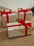 Уютная и красивая кондитерская. На первом этаже магазин, где можно купить различные сладости или напитки с собой. На втором этаже кафе. Мы взяли попробовать несколько конфет "Гранд трюфель", несколько конфет "Счастье", пряное какао и какао Love. Пряное какао вкусное, не приторное. Нас предупредили, что какао Love более пряное. Но это не пошло ему на пользу, он вообще не сладкий и сильно много специй. Конфеты вкусные, но ничего особенного. Нам понравился гранд трюфель с жидким центром.