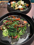 Бифштекс из мраморной говядины, вяленые томаты, айсберг, моцарелла, помидоры, руколла, бекон, соус тысяча островов