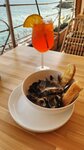 Красивое кафе с шикарным видом на море. На момент написания отзыва заведение работает в пробном режиме, официальное открытие будет 12 июля, о чем официантка сразу предупредила. Алкоголь не продают, можно со своим, но по пробковому сбору (лично я уважаю такой подход у заведений). Я брала мидии в сливочно-сырном соусе и б/а апероль. Была приятно удивлена, мидии очень вкусно приготовлены, соус шикарный. Апероль тоже вкусная, не сладкая, если не знать, что она безалкогольная, сразу и не поймёшь. В общем место к посещению смело рекомендую!