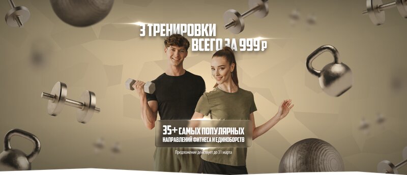 Тест-драйв в FITTS! Попробуйте 3 любых тренировки за 999₽ до 31.03