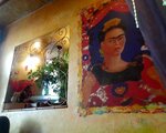 В ту субботу по рекомендациям коллег зашли в мексиканское кафе "Фрида"на Чайковского.Что сказать:интересный антураж,все тематически выдержанно-мМексика,Фрида Кало и немножко Индия) Сидели в первом зале для кальянщиков:если хотите более уютно устроиться,надо заказывать столик(кстати,и сами столы очень необычные:дерево со смальтой,моей подруге очень зашло.Официанты вежливые-все обьяснили по составу блюд и подаче.Взяли перекусить бурито и такос с говядиной и шампиньонами(поскольку не большие знатоки мексиканской кухни,были слегка разочарованы ),но вот кофе на песке-выше всяких похвал:и очень интересная подача,и кофе превосходный👍😜(10 из 10)Очень интересные и необычные коктейли со смешными названиями))Тут 5 баллов!Ценник для центра города умеренный,рекомендую для тематического времяпровождения,обязательно придем еще:теперь уже вечером,послушать музыку!