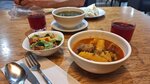 Симпатичное кафе-столовая с национальной дагестанской кухней. Очень разнообразное меню. Линия выдачи, как в обычной столовой, но интерьер в зале уже похож на кафе. Отличные сотрудники, доброжелательные - всё подскажут. Цены низкие. На 1000₽ купили пять основных блюд, напитки и десерт.