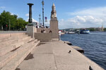Доброго всем дня)! Очень и очень нравится мне Университетская набережная, впрочем как и все набережные Питера, да и вообще весь город)) Но именно в этом отзыве речь будет о некоторых составляющих Университетской набережной). На Университетской набережной по бокам от спуска к Неве в облик набережной вписаны две гранитные скамьи. У них есть свои - бронзовые грифоны. Грифоны выполнены не целиком, из скамьи выступают голова, грудь, лапы и крылья. Подойти и погладить маленьких грифонов может каждый. Городские жители приписывают им умение исполнять самые заветные желания. Головы грифонов отполированы руками тех, кто верит в их могущество)). Силуэты грифонов созданы по моделям скульптора П. П. Годе в 1834 году, но еще до революции они были утрачены. В 1959 году по сохранившимся литографиям архитекторами И. Н. Бенуа и А. Е. Поляковым скульптуры воссоздали в первоначальном виде.