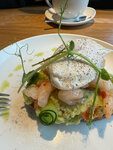сливочная бриошь, красная рыба собственного соления, спелый авокадо и яйцо пашот