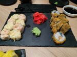 Пришли покушать с подругой и ее братом роллы,все вкусно,приятный официант стажёр,всё понравилось) с подругой узнали себя (точнее себя,когда я была стажёром) Обстановка приятная,еда вкусная,есть детская) брали ещё том - ям было остро,вкусно)