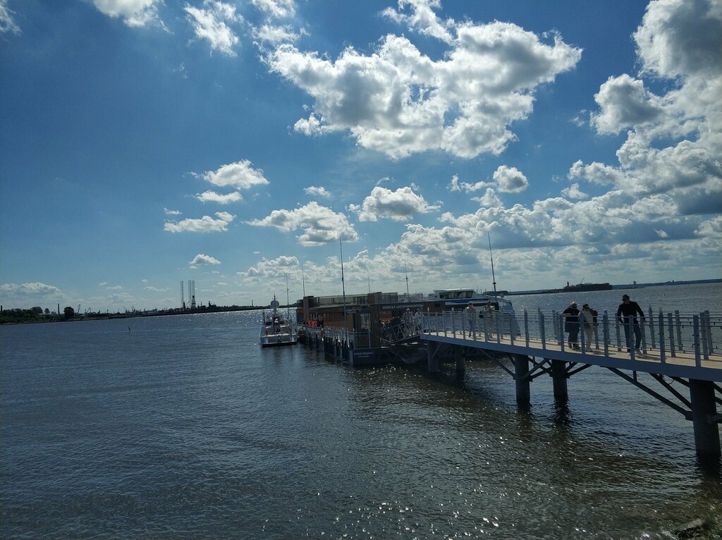 Причал «Острова Фортов» в Кронштадте, расположенный в одноимённом музейно-историческом парке и Каботажной гавани. Здесь швартуются прибывающие и стартуют экскурсионные суда в центр Петербурга (Дворцовая пристань) — высокоскоростные катамараны и метеоры. Навигация понятная, все чисто, есть навес и кафе. Мы ездили на современном катамаране. Время в пути около 1 ч (едет без остановок, очень комфортный способ добраться до центра из Кронштадта). Виды (форты, залив, Васильевский остров, новый мост ЗСД), высокая скорость однозначно завораживают. На катамаране 2 палубы (нижняя с кондиционером и верхняя открытая, везде чистота и порядок) 🔥 Мы остались в полном восторге! Одно из ярких впечатлений нашего лета, 100% рекомендуем 👍. Даже, с учётом, что цена на билет довольно высокая, и на борту в баре тоже недёшево (напитки, снеки приобретаются по желанию). Мы покупали билеты на сайте заранее, забирали в кассе в парке. Для жителей Кронштадта кстати действуют хорошие скидки на билеты.
