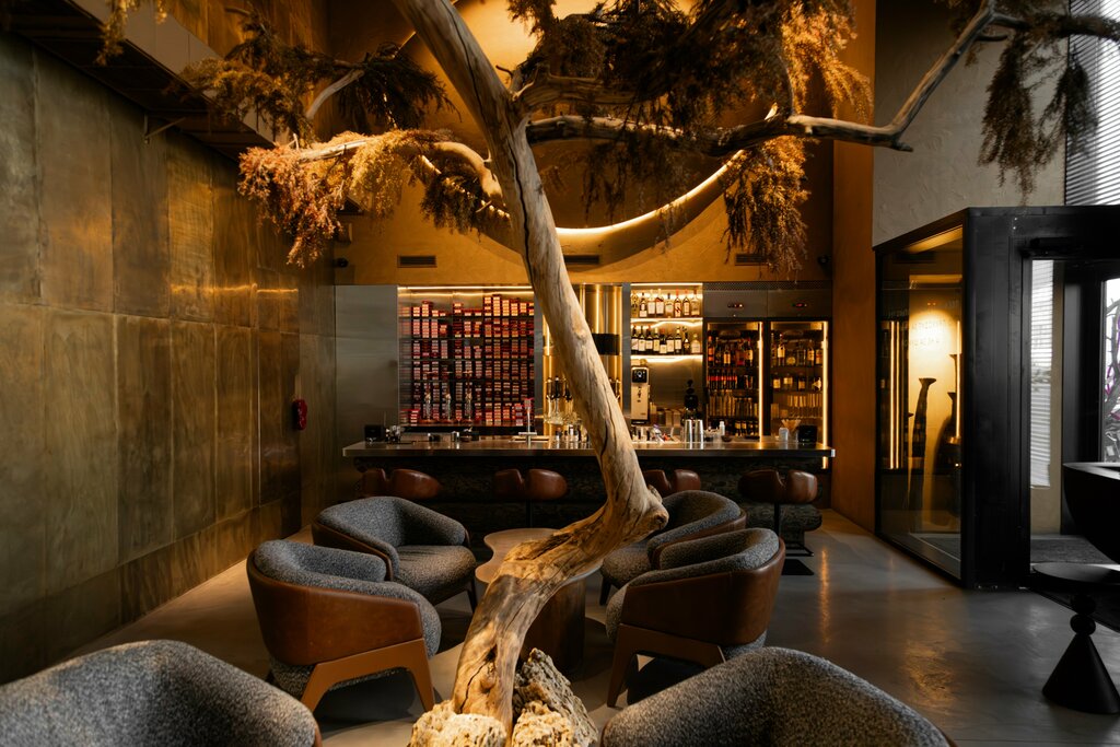 Пока писала этот отзыв, уже успела сюда вернуться несколько раз. Тут приятно проводить время, можно вкусно поужинать и покурить кальян💨 Стильный интерьер: высокие потолки, просторно, много интересных деталей, связанных с пустыней. Очень аутентично. Назвала бы это эстетическим блаженством. По кухне: - Рекомендую попробовать батат фри, подается с соусом. Если честно, много где пробовала батат фри, но тут он какой-то особенный, - Также понравился салат с баклажанами, - Большой выбор чая и лимонадов, что является несомненным плюсом, потому что можно приходить и каждый раз пробовать что-то новое по напиткам, - Вкусный том-ям, порция большая, - Попкорн из креветок, выглядит очень круто! И вкусно! - Чай с инжиром мне напомнил фруктовый сок с мякотью. Имейте ввиду, что после 23-00 - ночное меню, где представлены не все позиции, кофе тоже готовят до определенного времени. Редко, где нравится кальян, но тут отлично забили, курился легко и чувствовался весь вкус. Спасибо кальянщику Ивану, сервис - топ! Можно попросить забить микс «Лия» и насладиться вкусом :) Приятные и дружелюбные хостес. У нас ни разу не было долгой подачи еды. Официанты все быстро приносят и следят за столами. Благодарю! Удобно, что можно спокойно припарковаться около заведения.