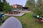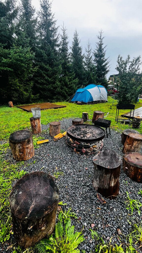 Отличный кемпинг. Есть всё необходимое для отдыха с палаткой. Кухня, посуда, холодильники, микроволновка, газ, электричество, душ с горячей водой, туалет, умыальники, место для костра, мангалы, беседки.... Мобильный интернет найти можно. Чисто, уютно. Хозяин СУПЕР. Озеро рядом, вокруг КРАСОТА. Отлично провели отпуск